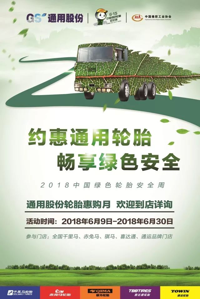 為了讓更多的普通消費(fèi)者了解什么是綠色節(jié)能輪胎,輪胎標(biāo)簽的作用,以及輪胎安全使用知識(shí),同時(shí)也為了答謝消費(fèi)者長(zhǎng)期以來(lái)的支持,通用股份在全國(guó)通用品牌門(mén)店(千里馬、赤兔馬、通運(yùn)、騏馬、喜達(dá)通)開(kāi)展“約惠通用輪胎 暢享綠色安全”的輪胎惠購(gòu)活動(dòng)(2018年6月9日至6月30日),并采取滿減優(yōu)惠、幸運(yùn)抽獎(jiǎng)、好禮相送等形式,以實(shí)實(shí)在在的優(yōu)惠,與消費(fèi)者共同擁抱安全出行。