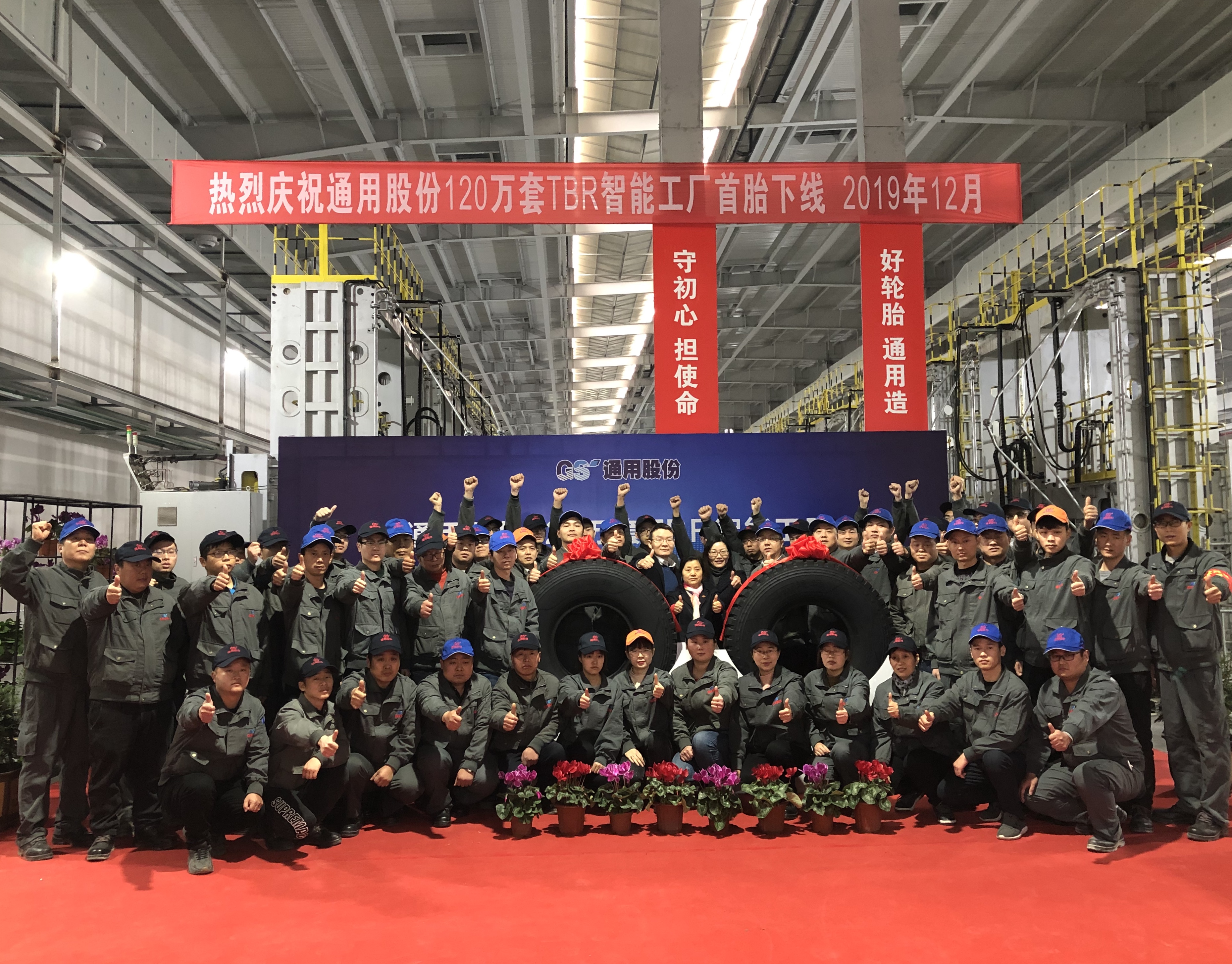12月27日上午,通用股份120萬套TBR智能工廠首條全鋼子午線輪胎正式下線。下線首胎為通運 12.00R20—XR856。通用股份董事長顧萃,常務(wù)副總經(jīng)理程金元、生產(chǎn)板塊總經(jīng)理虞秀鳳等領(lǐng)導出席了本次儀式。