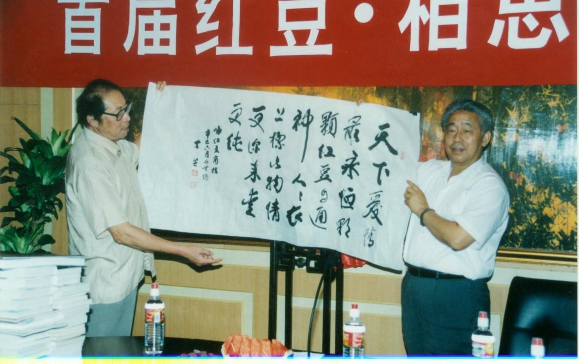 正如丁芒老先生所說:我與紅豆有緣!2002年,丁芒再次來到了紅豆集團(tuán),這次也是因?yàn)?ldquo;七夕節(jié)”。第二屆紅豆七夕節(jié)活動的主題是詩詞,而詩詞又是丁芒老先生最擅長的領(lǐng)域,所以紅豆集團(tuán)再次邀請丁芒前來助陣。當(dāng)時(shí),紅豆集團(tuán)與中華詩詞學(xué)會、中華詩詞雜志社、無錫市委宣傳部聯(lián)合舉辦了紅豆詩詞大賽,開先河的設(shè)立一等獎20萬元人民幣,累計(jì)獎金40萬元“尋當(dāng)代王維”,在中國詩壇轟動一時(shí)。丁芒老先生被邀請作為大賽的初評和終評評委,著名作家、南京市作家協(xié)會顧問馮亦同老先生也是當(dāng)時(shí)的評委之一。據(jù)悉,當(dāng)天的新聞發(fā)布會就引來了《人民日報(bào)》、《光明日報(bào)》等100多家新聞媒體,同時(shí)也邀請到了賀敬之、柯巖等10多位文壇名家。
