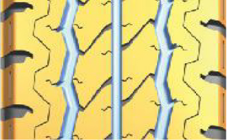 ·寬大的花紋塊設(shè)計(jì)。配合曲折的花紋溝槽,擁有更好的抓地性能,行駛更加安全。